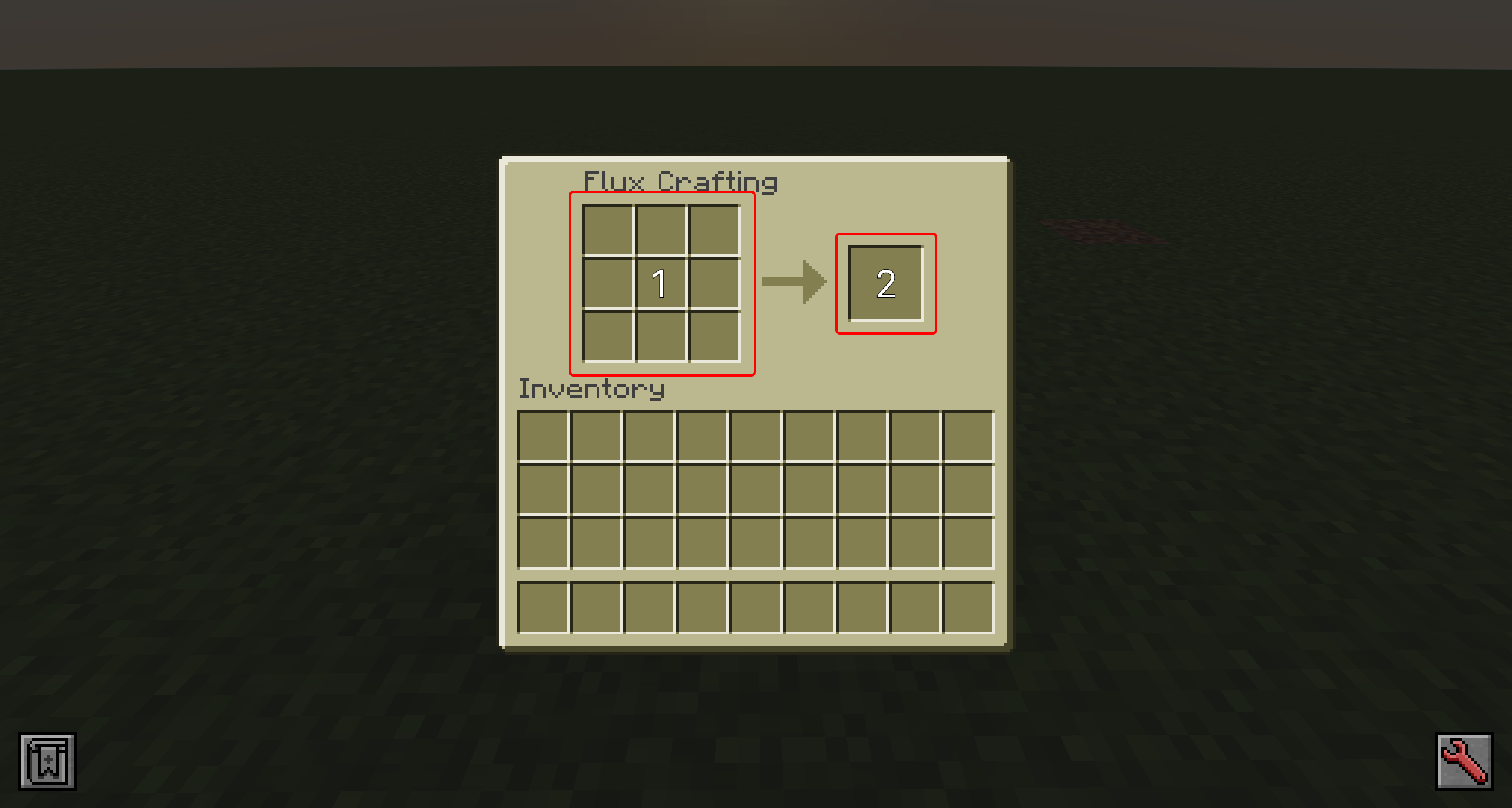 Place the Flux Crafter in-world and right-click to view the GUI. Inside there's a 3x3 crafting grid, similar to a Crafting Table. Place your recipe ingredients into the grid.