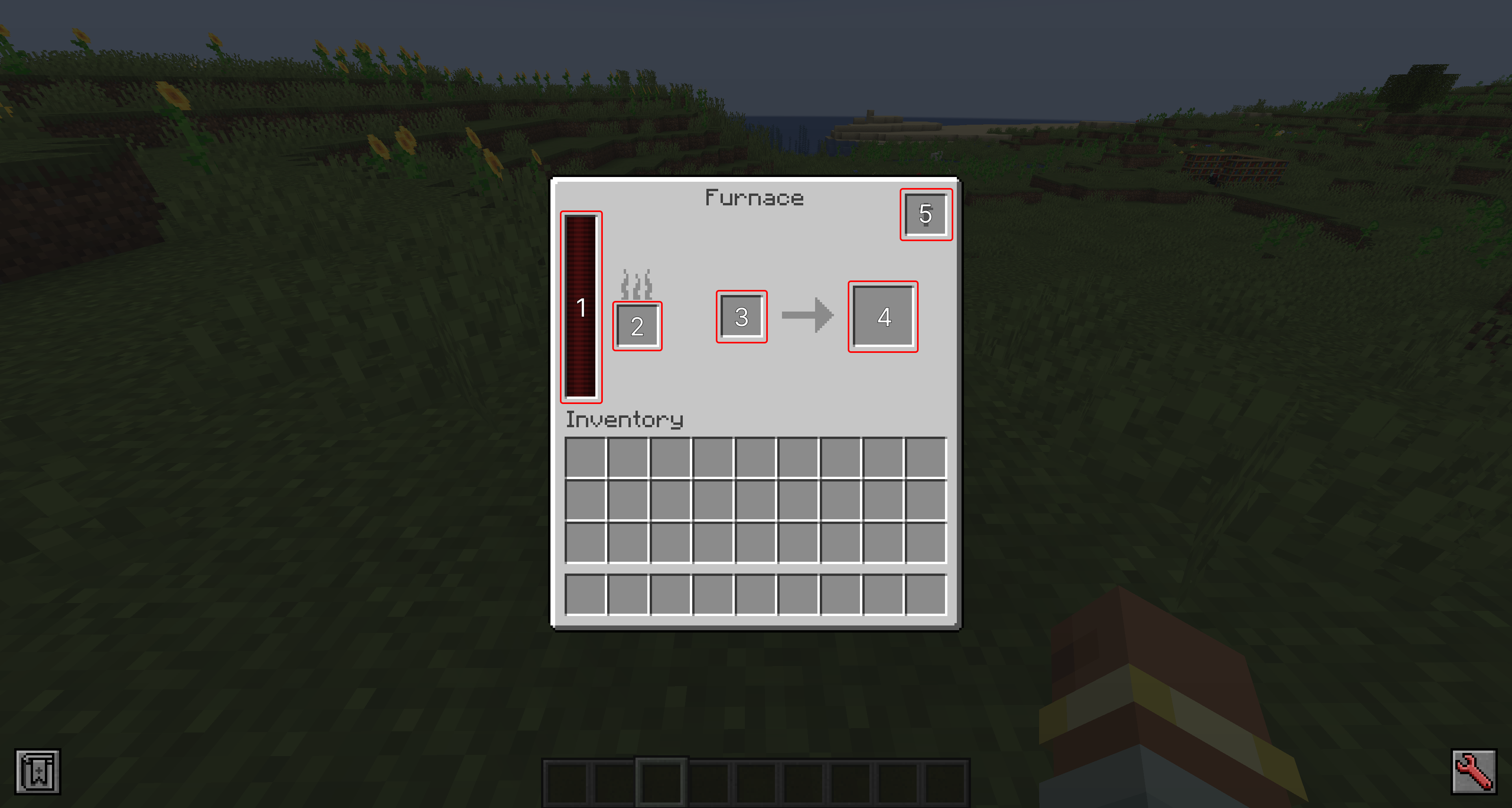 - Fuel Slot: Burnable items can be placed here to generate energy.