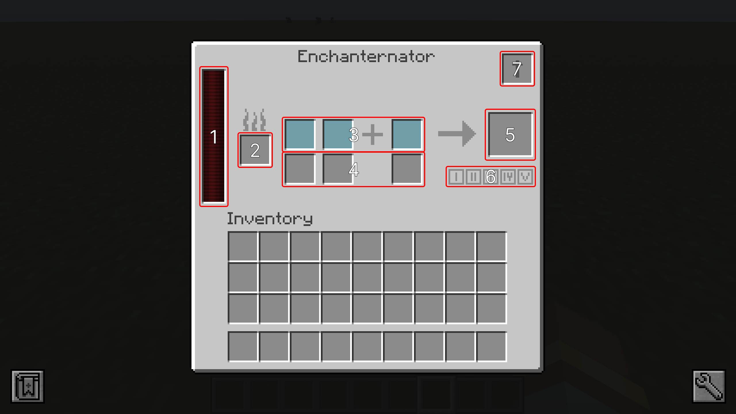 - Enchantment Level Selectors: Click to select the desired output enchantment level.